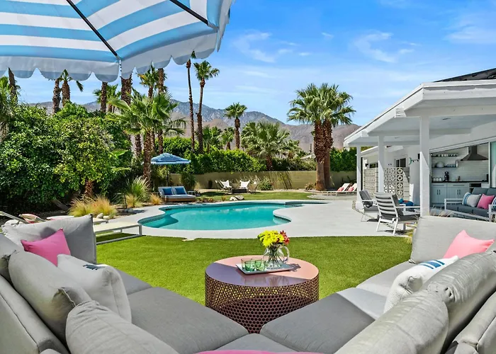 Kaptur Palms Palm Springs villa offers proximity to nearby tourist spots, such as the Robolights, situated approximately 25 minutes' walk away. The property offers guests a relaxing experience with a hot tub.